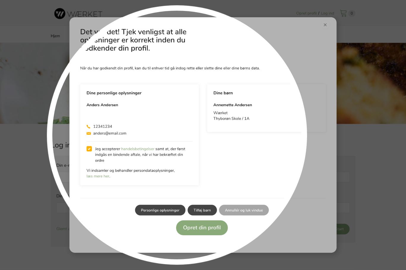 Vi har gjort det let for dig at bestille. Når du først har oprettet din egen og børnenes profil, kan du med ganske få klik bestille mad til én eller flere uger. Du kan til enhver tid logge ind på din profil og hurtig få et overblik over familien og dine bestillinger.