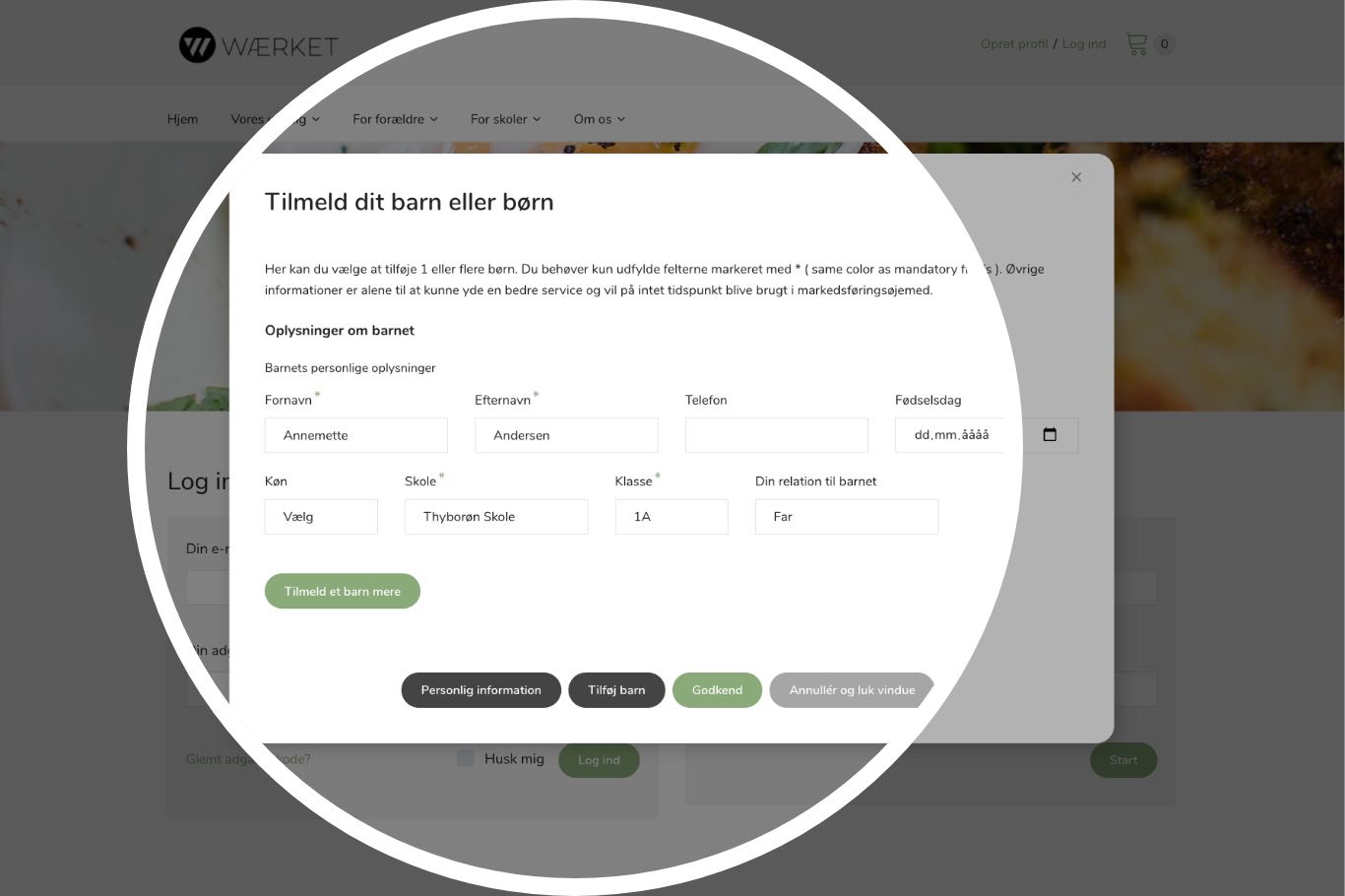 Tilmeld dit barn eller børn.
